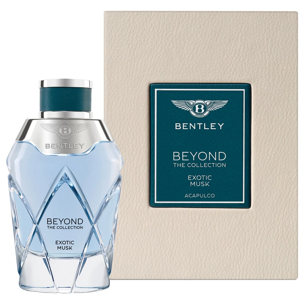 In Exotic Musk transformeert Mathilde Bijaoui de rijke amandelgeur in een reukfluweel, zo zacht en zwoel als een tropisch briesje … De majestueuze, gefacetteerde fles is geïnspireerd op de karakteristieke koplampen van geslepen kristalglas van de Continental GT. De verfijnde snit symboliseert de verschillende facetten van de wereld en het unieke van elke reisbestemming. De kenmerkende kleurcode van elk product weerspiegelt het zeer grote en unieke kleurenpalet van het merk Bentley.