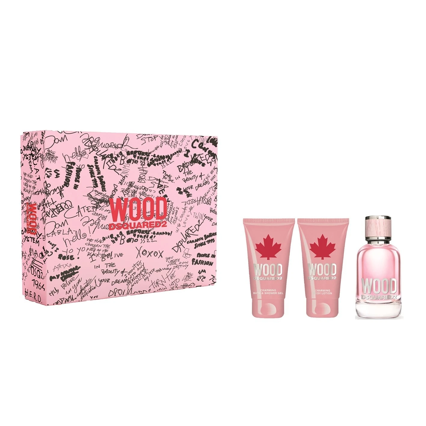 Dsquared2 Wood pour Femme bevat een energieke en ultra-vrouwelijke Eau de toilette 50 ml + een Bath & Showergel en Body Lotion van deze geur.
